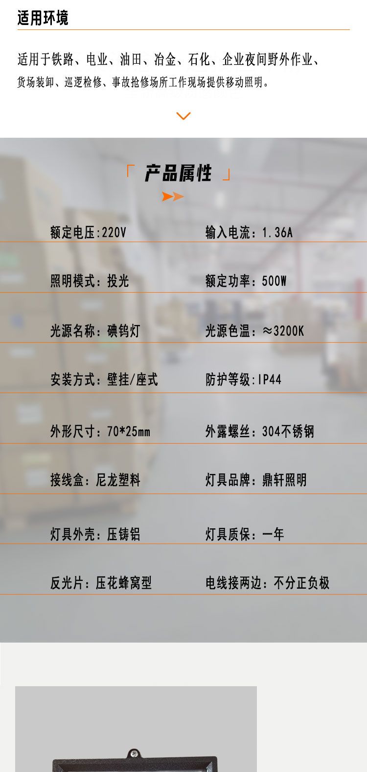> 鼎轩照明全方位移动照明车配件500W碘钨灯暖黄光220V1000W