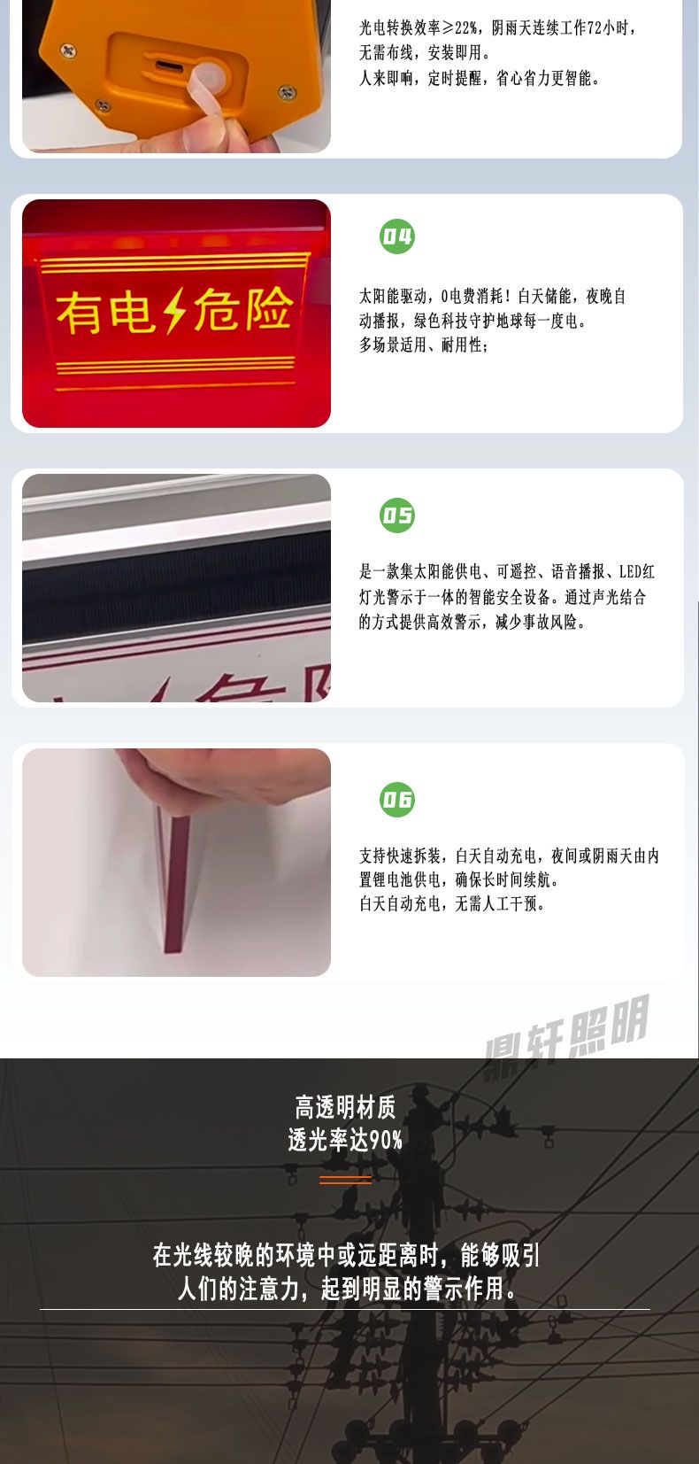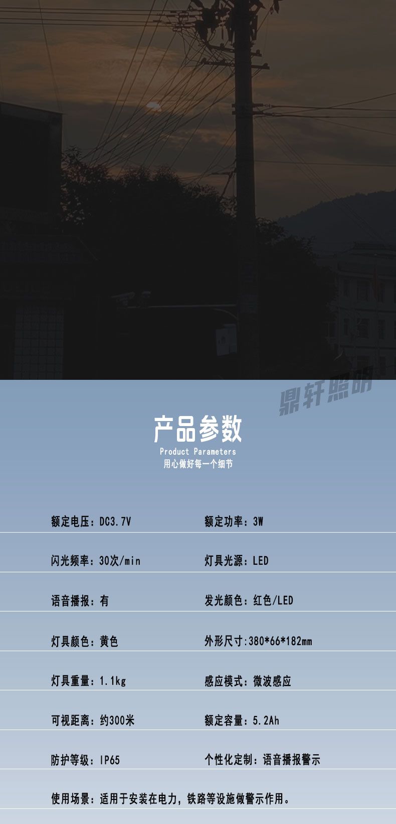 > 鼎轩照明智能声光警报器大声太阳能红外语音警示牌电缆遥控调节悬挂式IP65